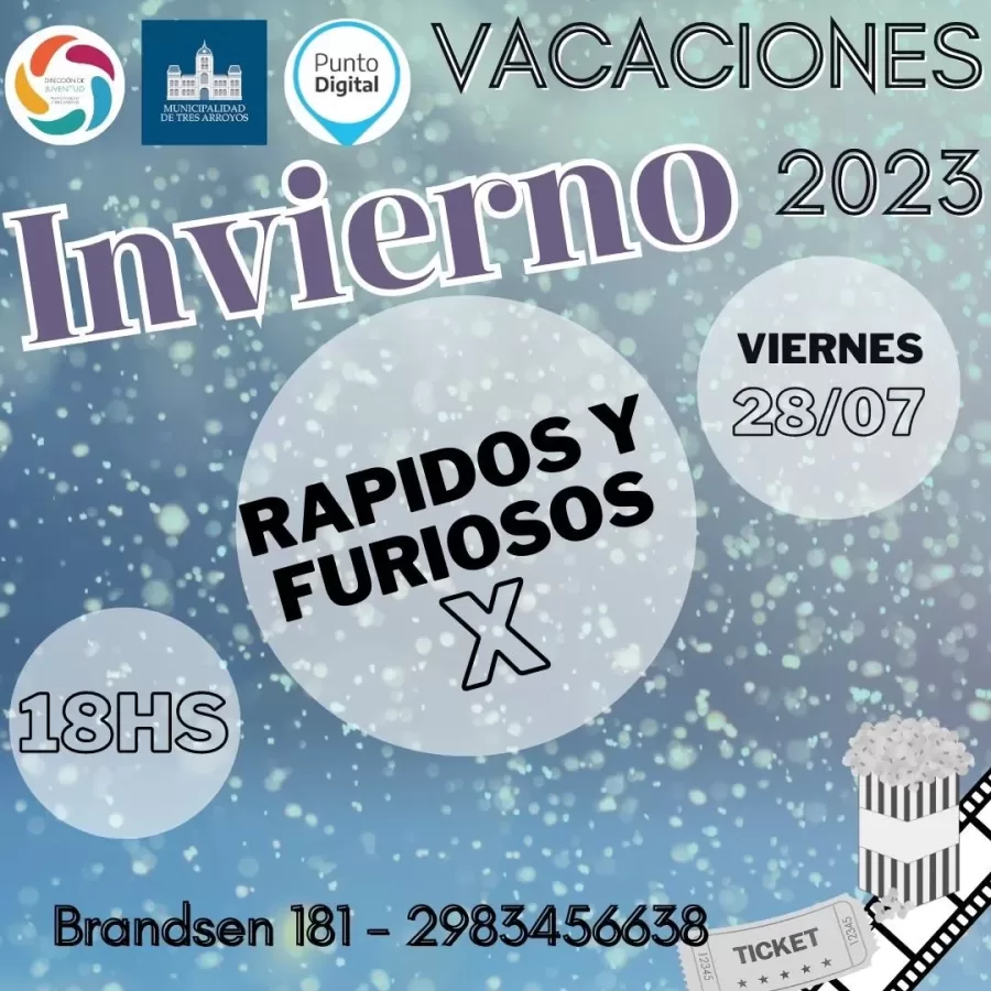 Este viernes 28 de julio, la Dirección de Políticas para la Juventud despide el receso de invierno con una tarde de película y pochoclos. En su sede, ubicada en Brandsen 181 se proyectará la película «Rápidos y Furiosos X» a las 18hs, la entrada es gratis.
