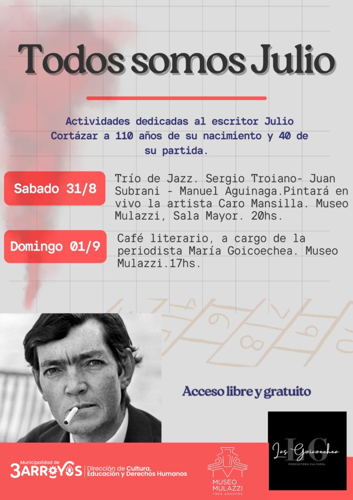 La Dirección de Cultura, Educación y Derechos Humanos, el Museo Municipal José. A. Mulazzi y la productora cultural Las Goicoechea, inician una serie de actividades relacionadas con el escritor Julio Cortázar, las que se pondrán en marcha a lo largo de estos meses. El próximo lunes 26 de agosto cumpliría 110 años de su nacimiento en tanto que el 12 de febrero se cumplieron 40 años de su partida.