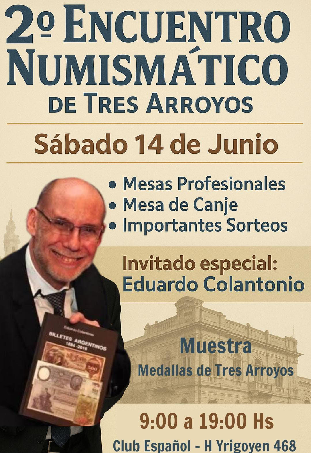 La jornada contará con la participación destacada de Eduardo Colantonio, reconocido numismático tresarroyense con proyección nacional e internacional. Colantonio es autor de un catálogo de billetes argentinos ampliamente utilizado por especialistas y coleccionistas, y presentará también una valiosa muestra de medallas vinculadas a la historia de la ciudad de Tres Arroyos.