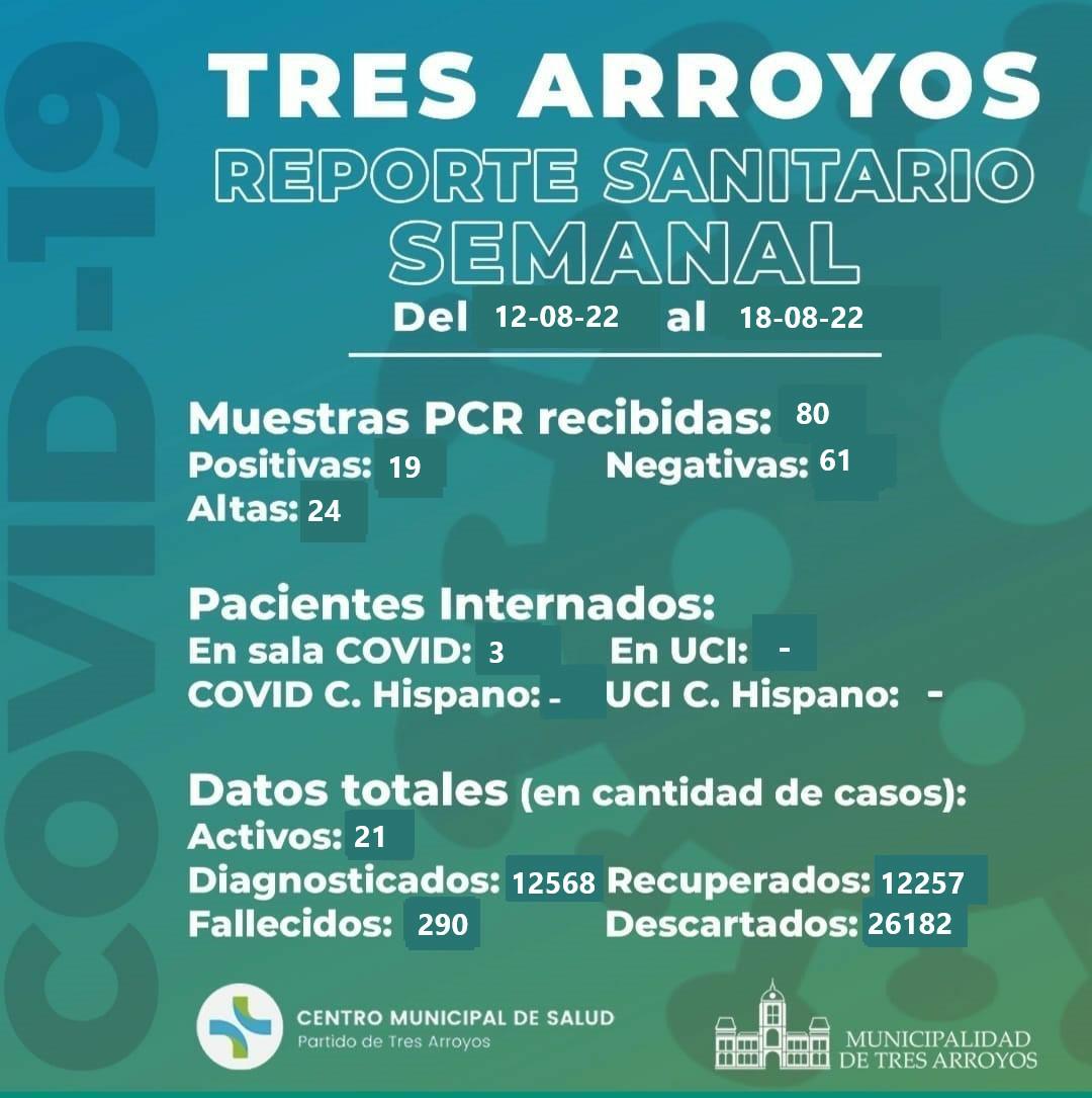 El vigesimoquinto reporte semanal de Covid 19 arrojó 19 positivos, 61 negativos y veinticuatro pacientes dados de alta.