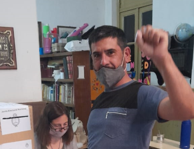 El candidato a primer concejal del Frente de Izquierda y los Trabajadores – Unidad, Gastón Domínguez, votó esta mañana a escasos minutos de iniciarse el comicio en todo el país.